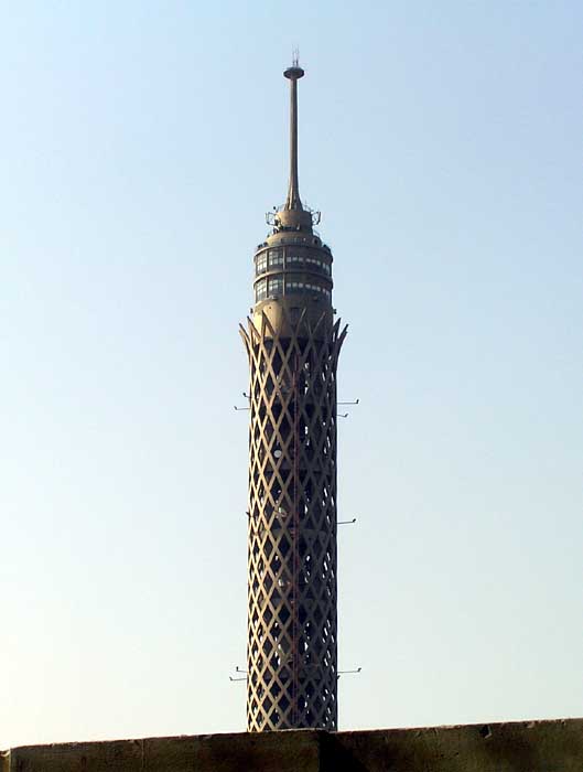 Cairo tower: - káhirská rozhledna. Metrem na stanici Opera, od nádraží je to směrem na Gízu. Věž je vlastně na jednom nilském ostrově. Z metra vylezete právě na tom ostrově, od metra kousek po proudu. Nemůžete ji minout, je vidět skoro odkudkoliv.