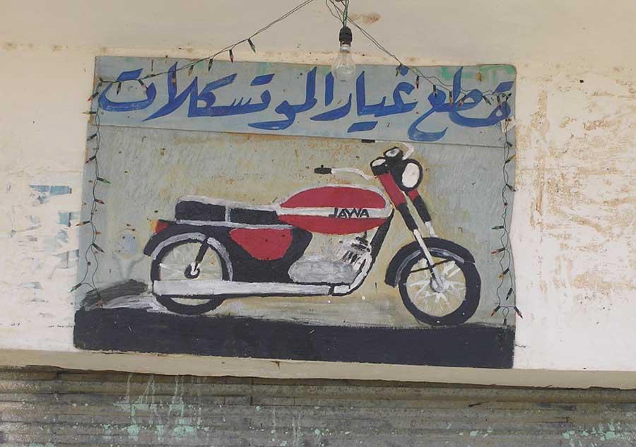 Jinak co mě zaujalo, tak kluci egyptský jezděj téměř výhradně na motorkách Jawa 350. Kdo si umí přečíst tenhle vývěsní štít, tak má možnost.